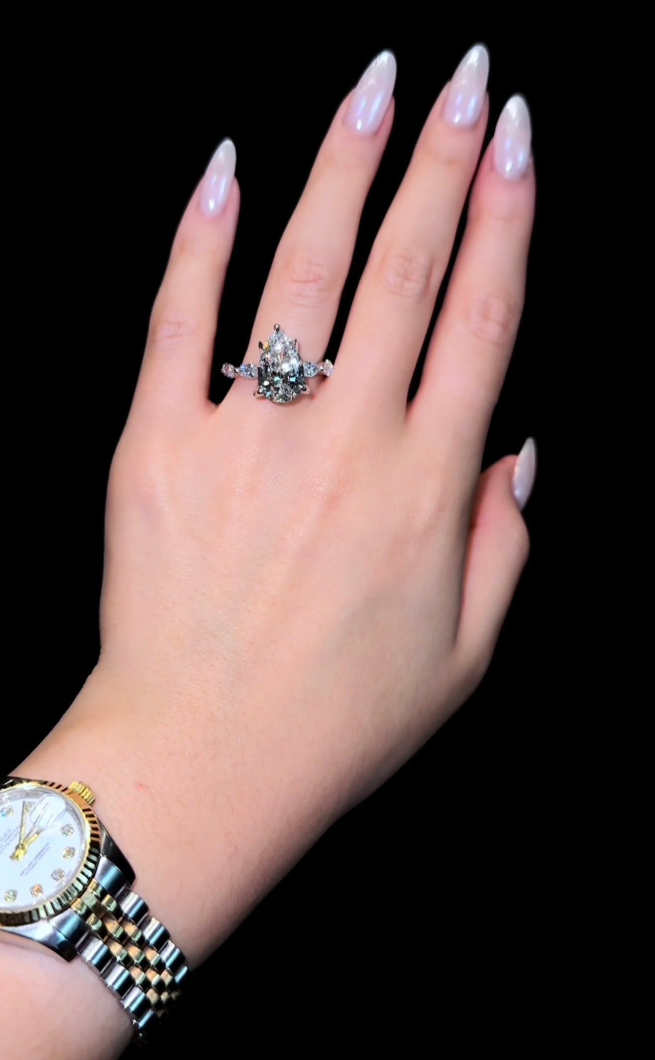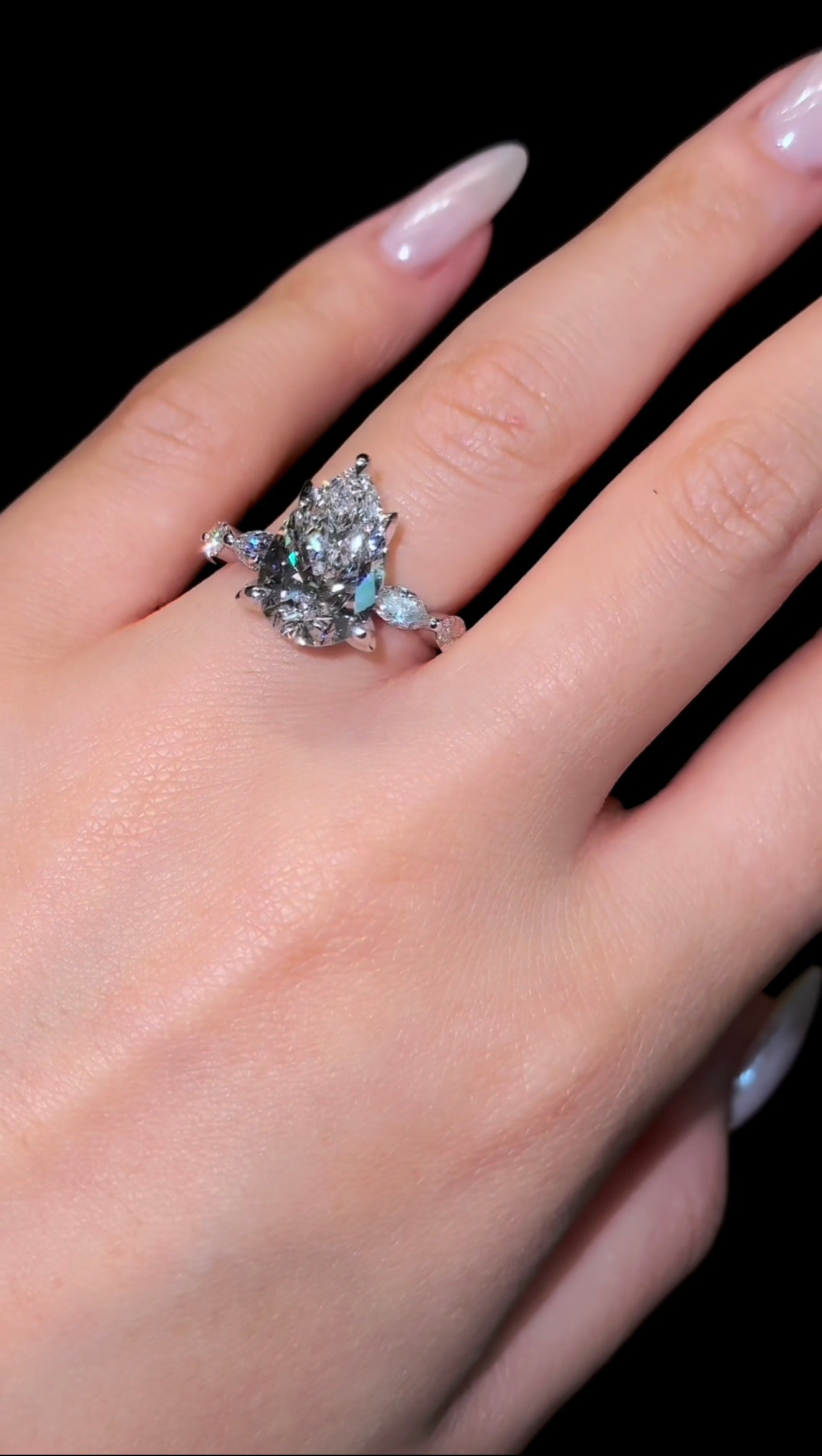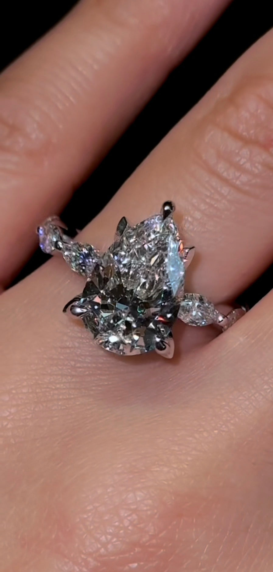 Our "Pear Tierra” Ring, features a Pear Diamond with our viral Tierra Diamond Flower Prongs on a Marquise Bubble Band.