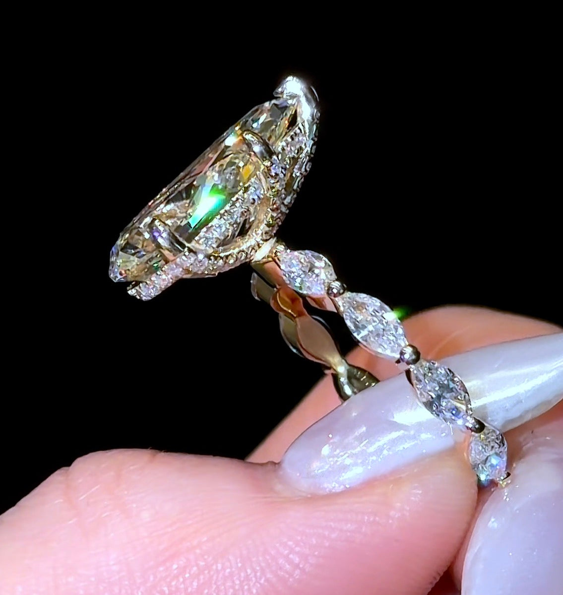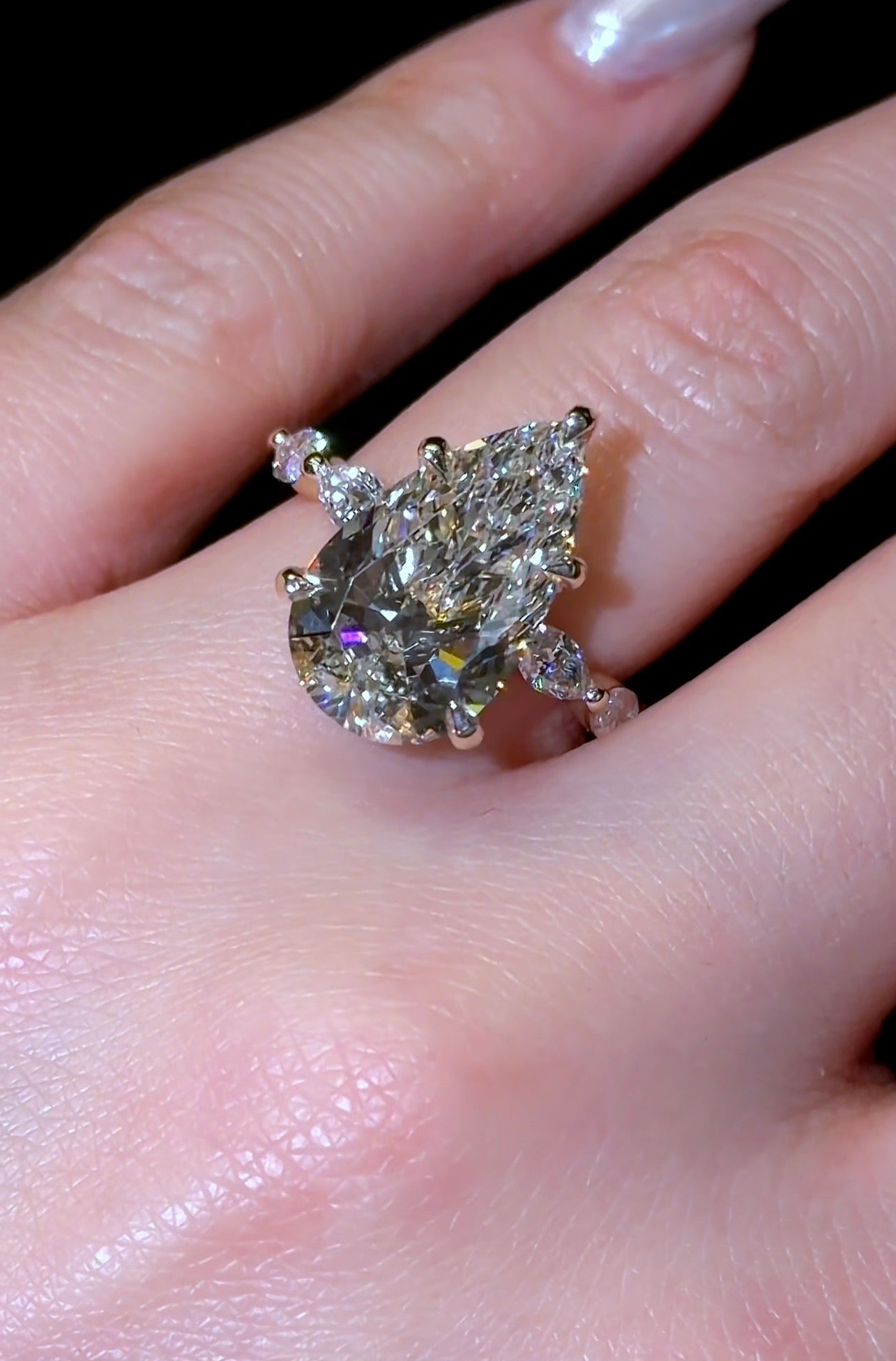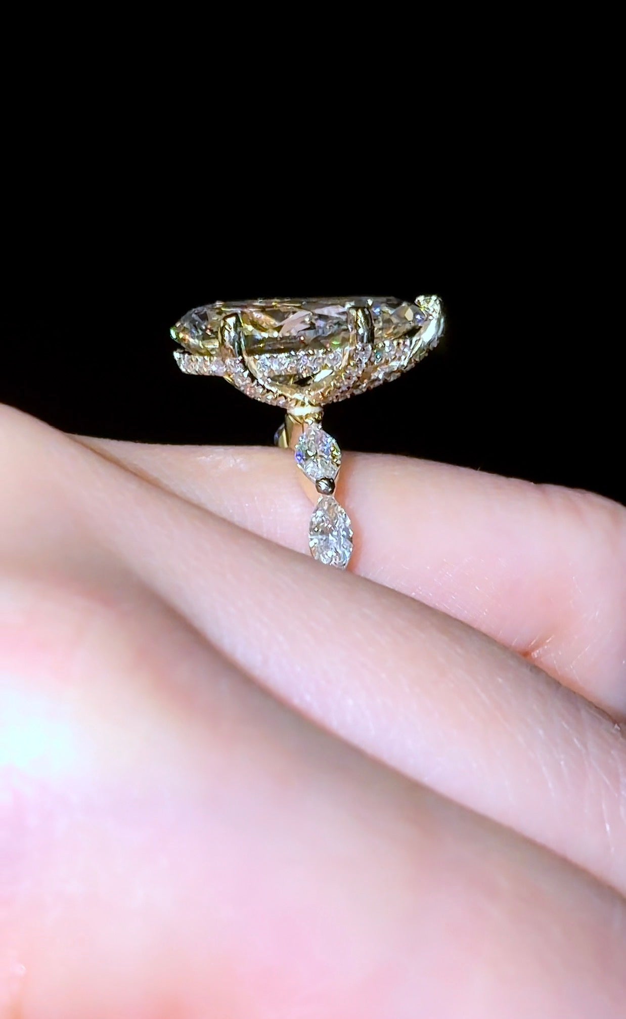 This ring features a Pear Diamond with Pavé Prongs on a Marquise Bubble Band.