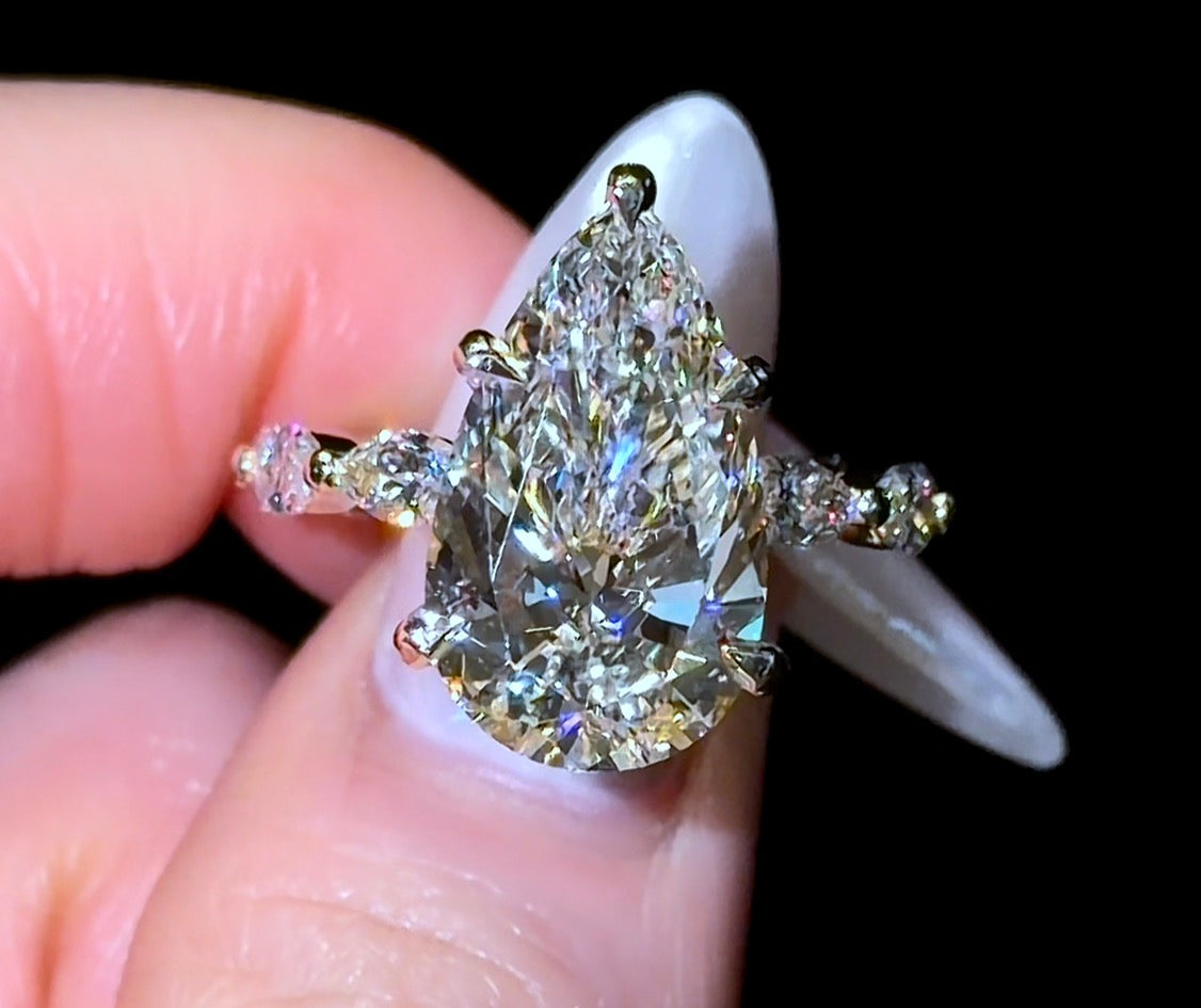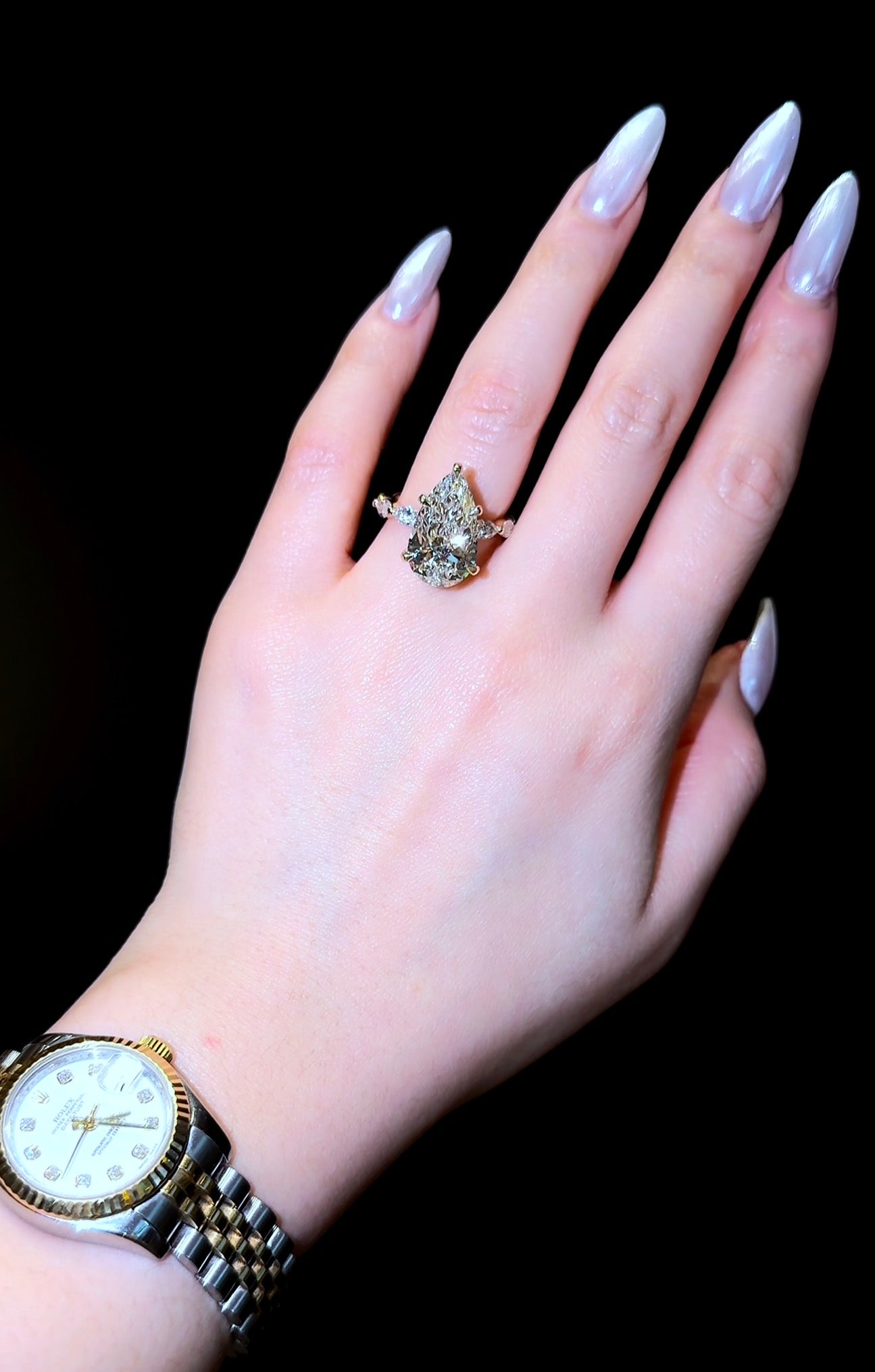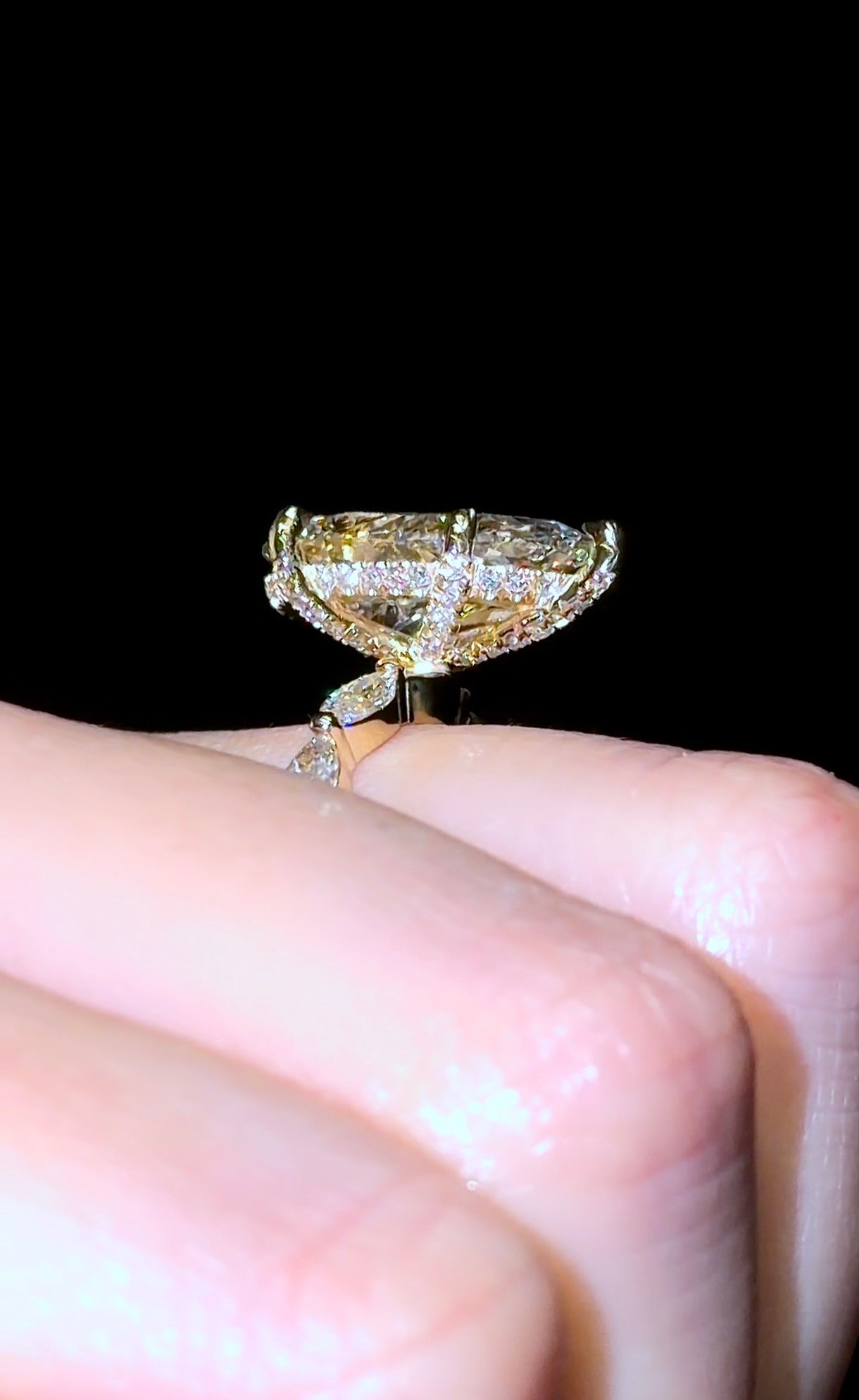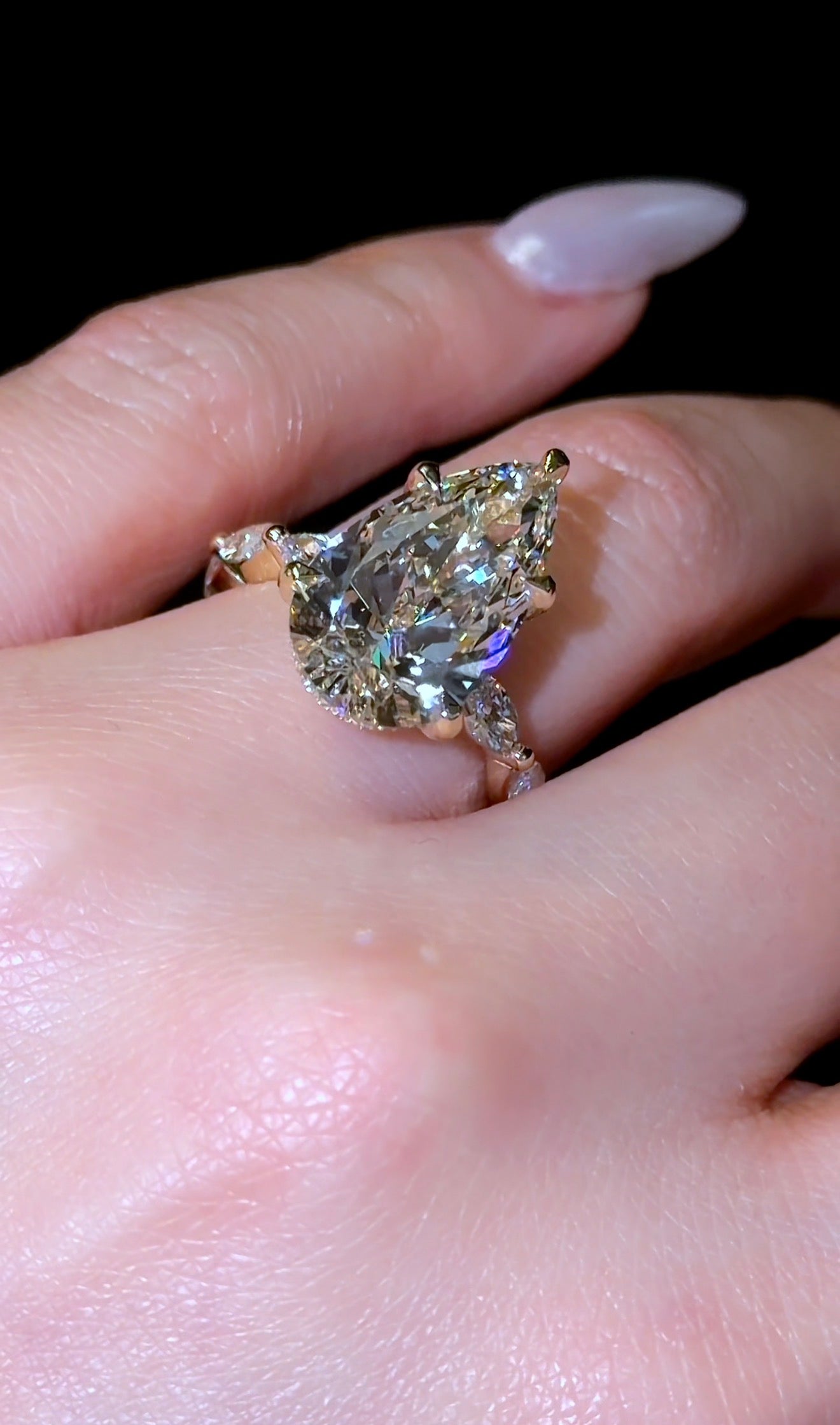 This ring features a Pear Diamond with Pavé Prongs on a Marquise Bubble Band.