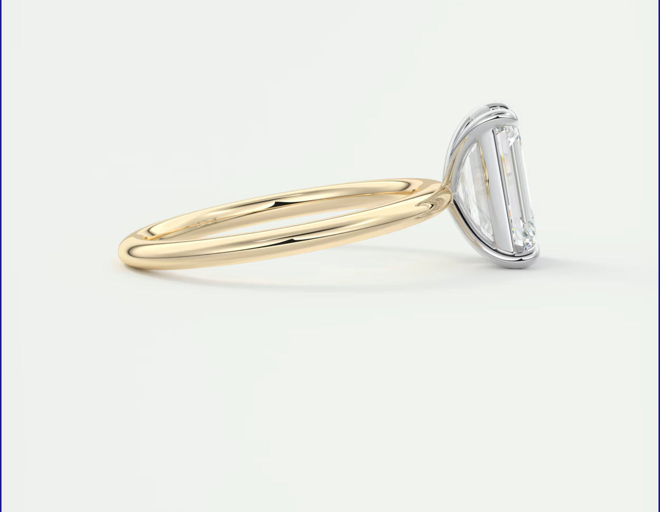 Your choice of metal reflects who you are. It also reflects in your diamond. Get a brighter, whiter look with our quintessential two tone, emerald cut engagement ring. Featuring an oh so sparkly emerald cut diamond, four claw prongs, and a thin, 1.9mm band to make your rock pop. It's our most popular solitaire ring for a reason.