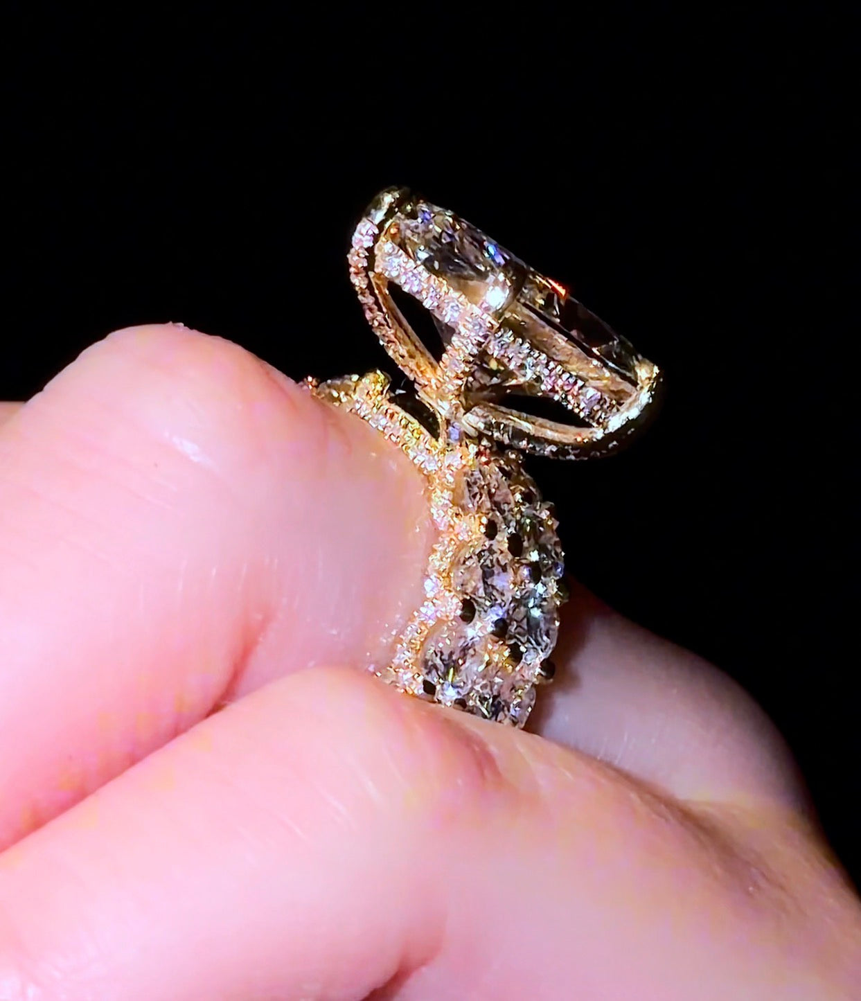 • Our VIRAL Marquise Queen Ring, with a Marquise Diamond, set on 4mm Round MicroPave Eternity Band w/ Pavé Prongs.