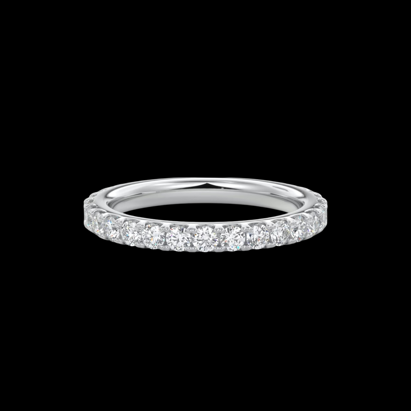 This band comes in 3 widths: 2mm, 2.3mm (most popular), and 2.6mm (popular for pairing with larger centre stone engagement rings).