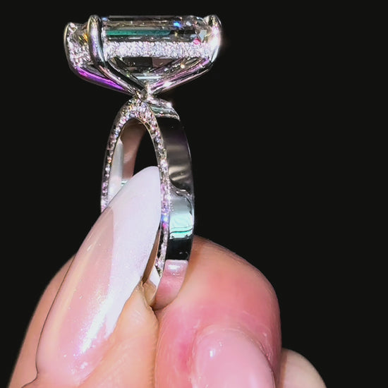 (The gold ring shown in video features a 4ct centre stone, and the white gold version features a 7ct centre stone, so to get the same look, please select either the “4ct” or “7ct” option under “Diamond Size”.)