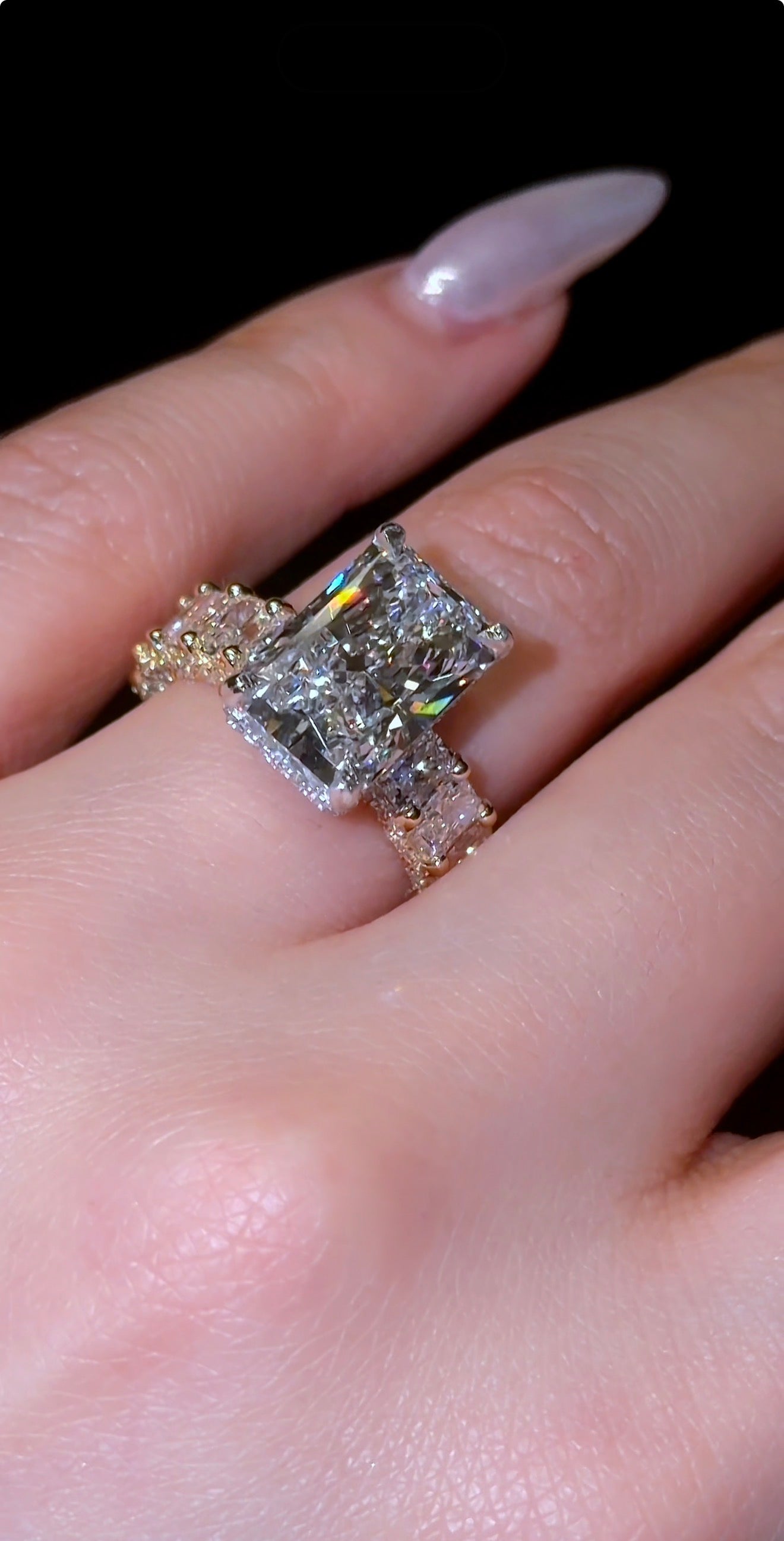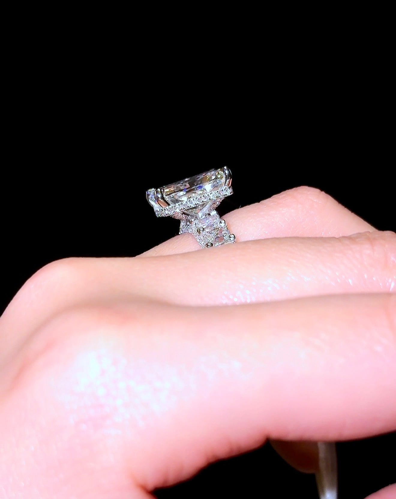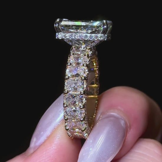 我们这款爆款“璀璨女王”戒指,采用微镶璀璨永恒戒圈和隐藏式光环设计,并以密镶爪镶工艺点缀。戒指上镶嵌超过250颗小钻石,覆盖整个戒圈。戒圈宽度约为4毫米。