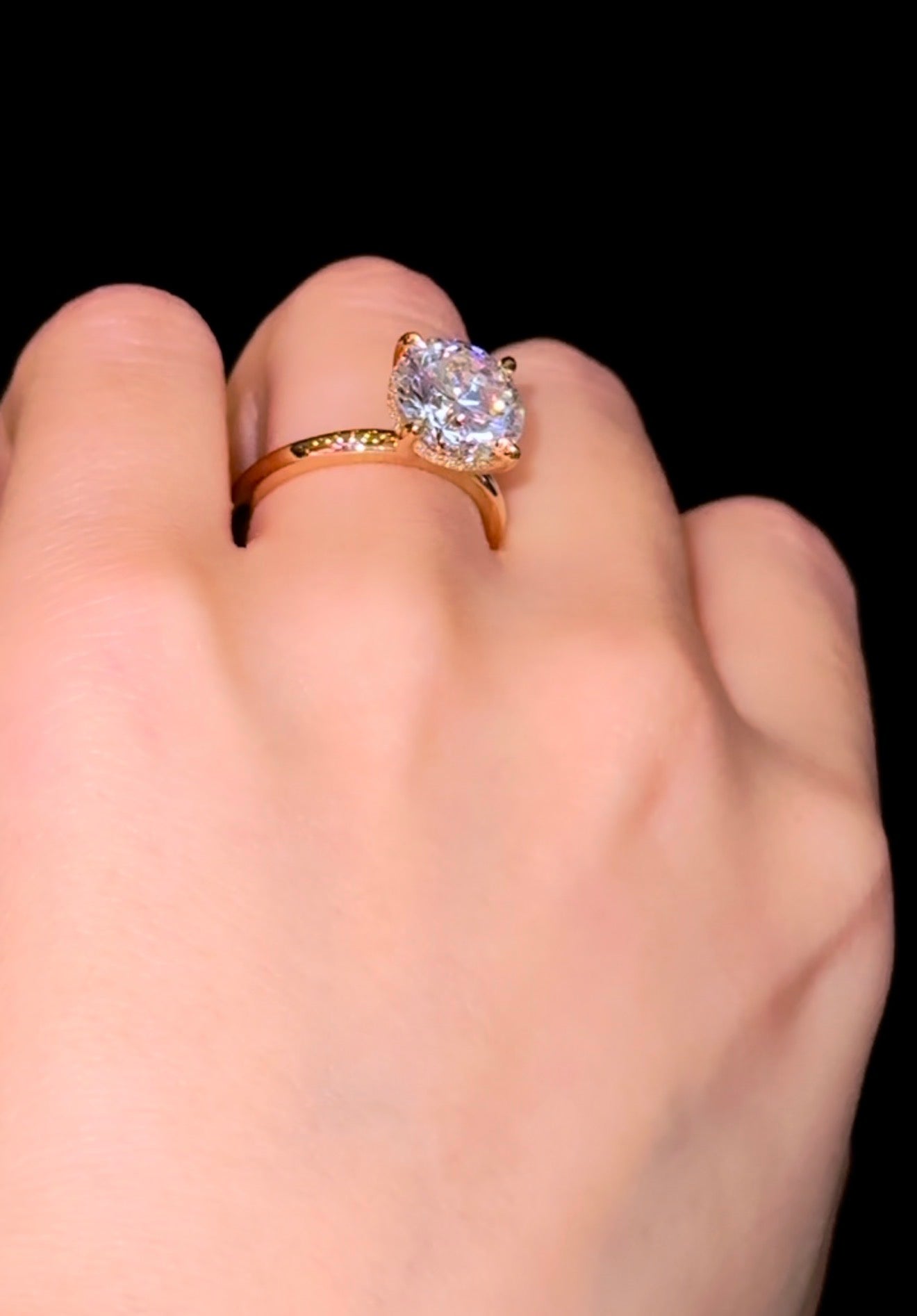 Our "Hidden Halo” Ring, features a Round Diamond on a Plain 2mm Band, with Hidden Halo.