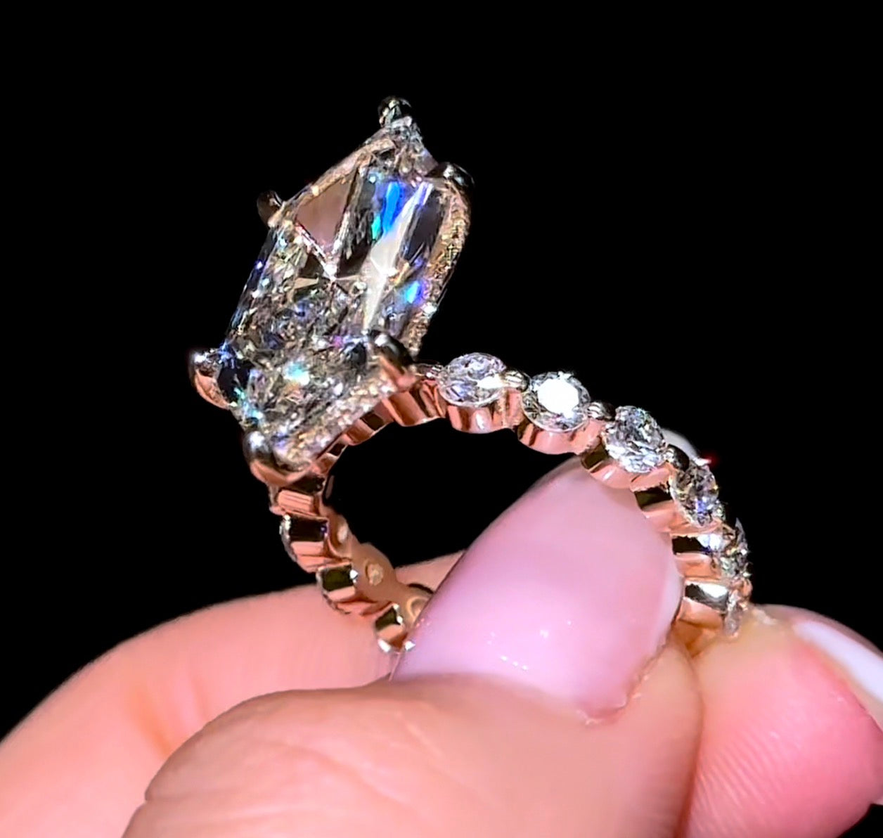 (如果选择较小的钻石,戒圈宽度会略作调整,以保持戒指整体比例协调。例如,4克拉款式的戒圈宽度为2.3毫米,以此类推。)
