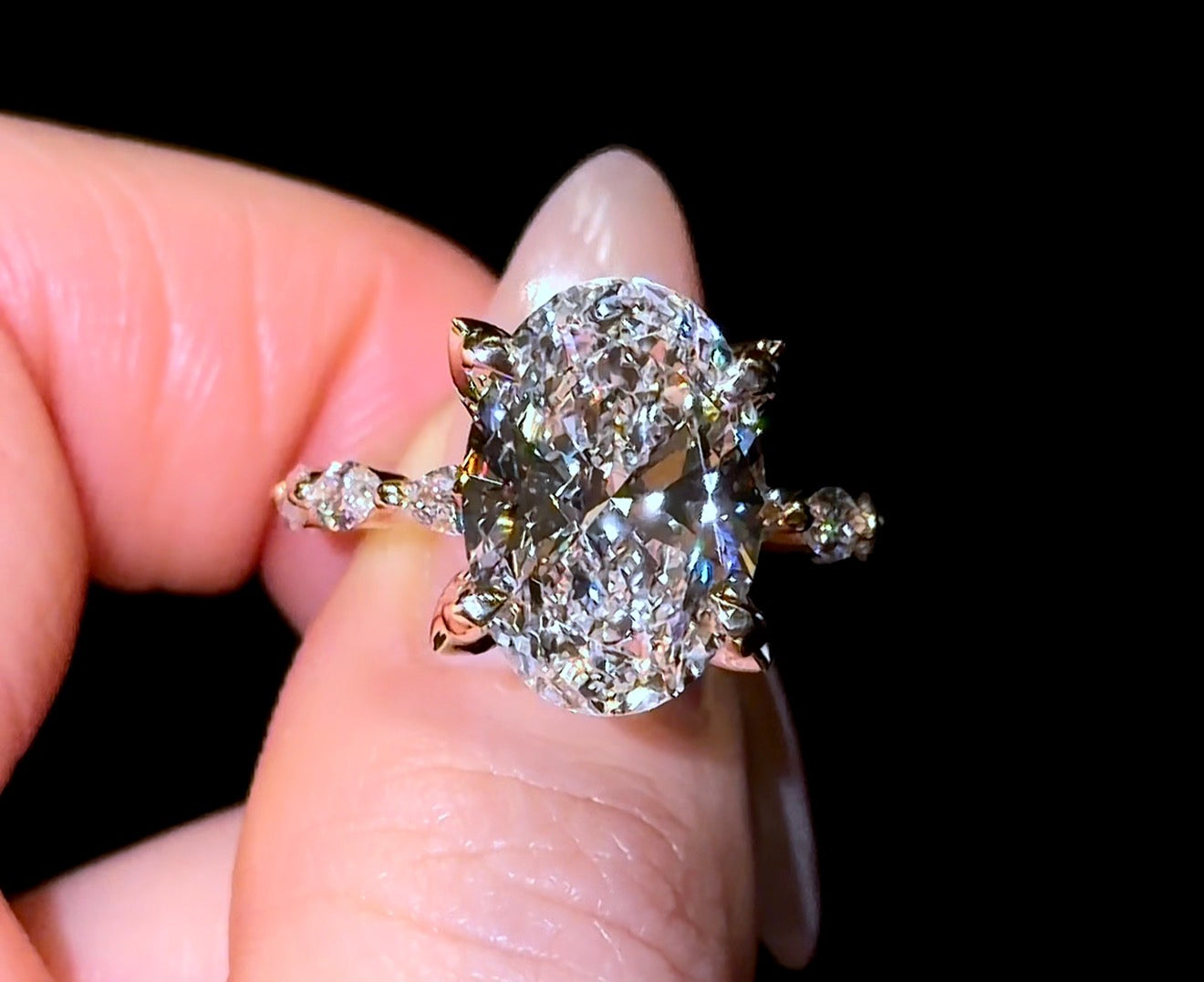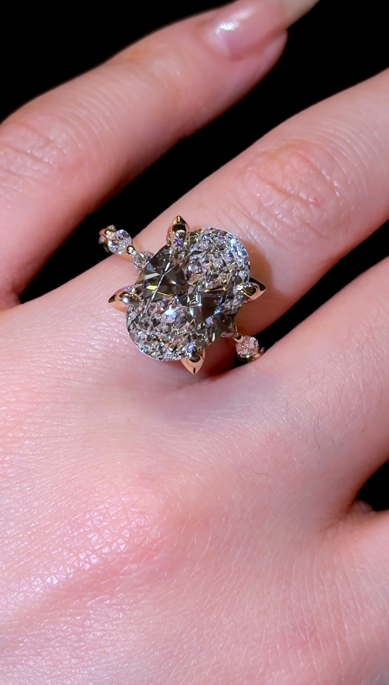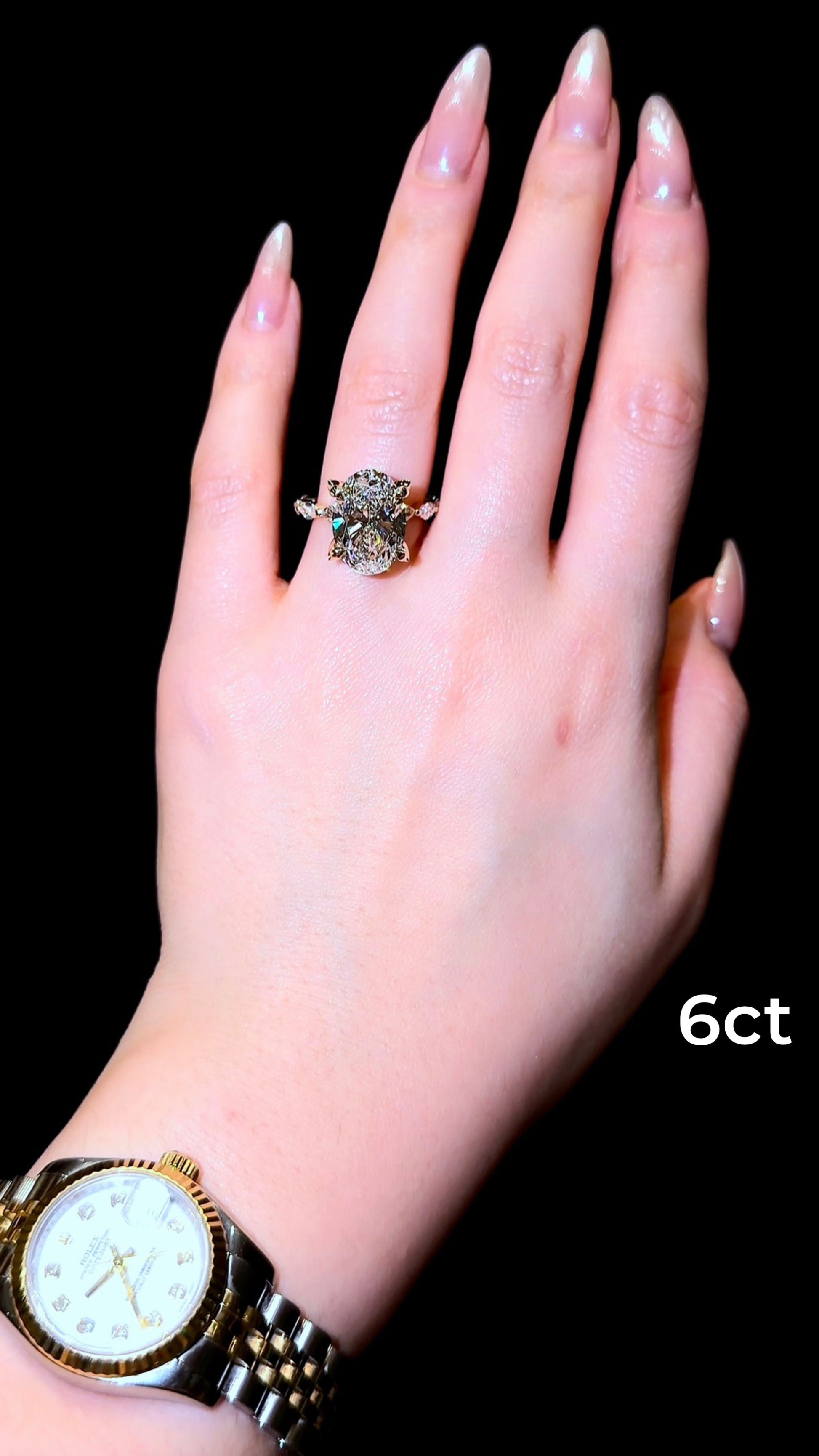 (视频中的戒指镶嵌一颗4克拉椭圆形钻石)