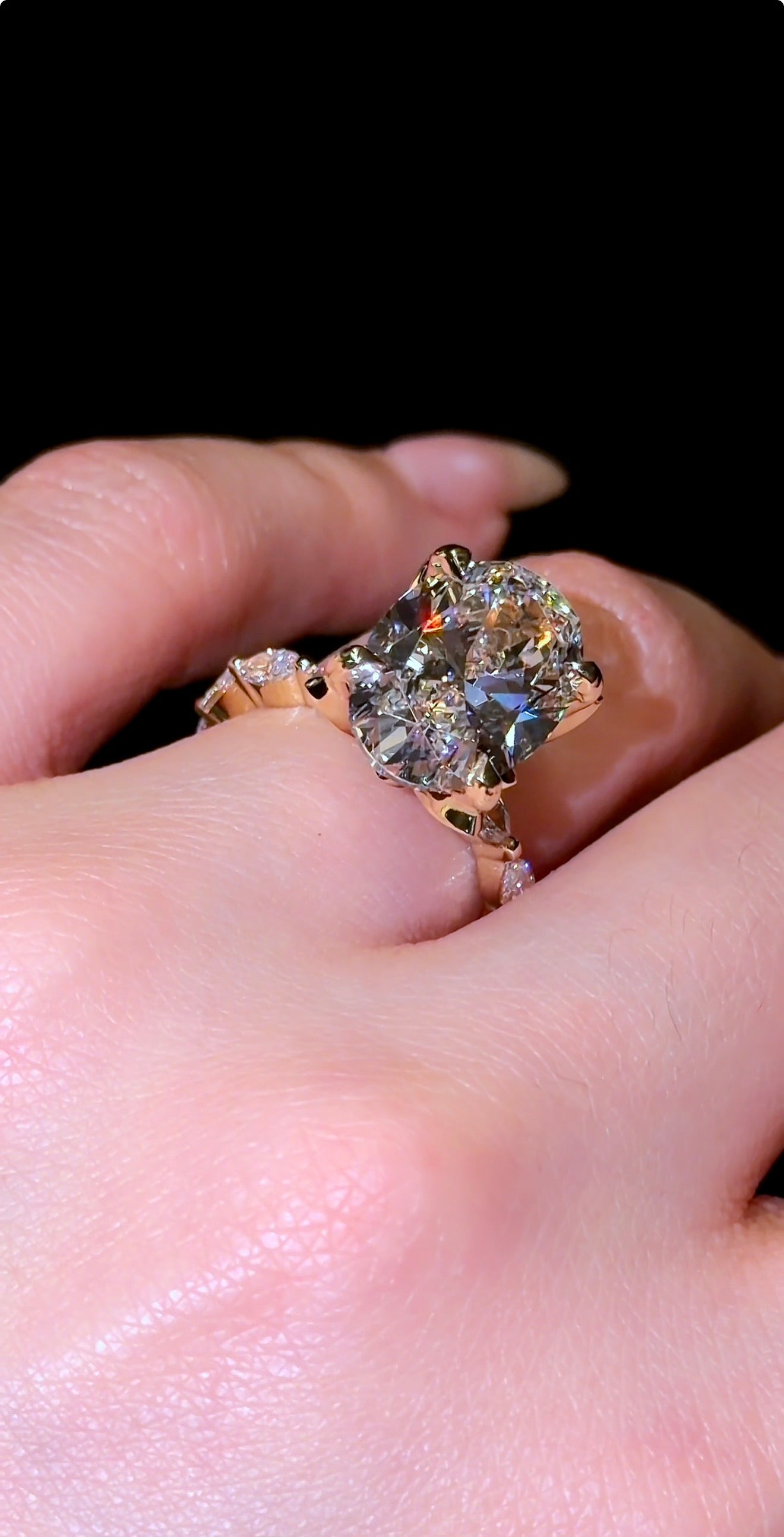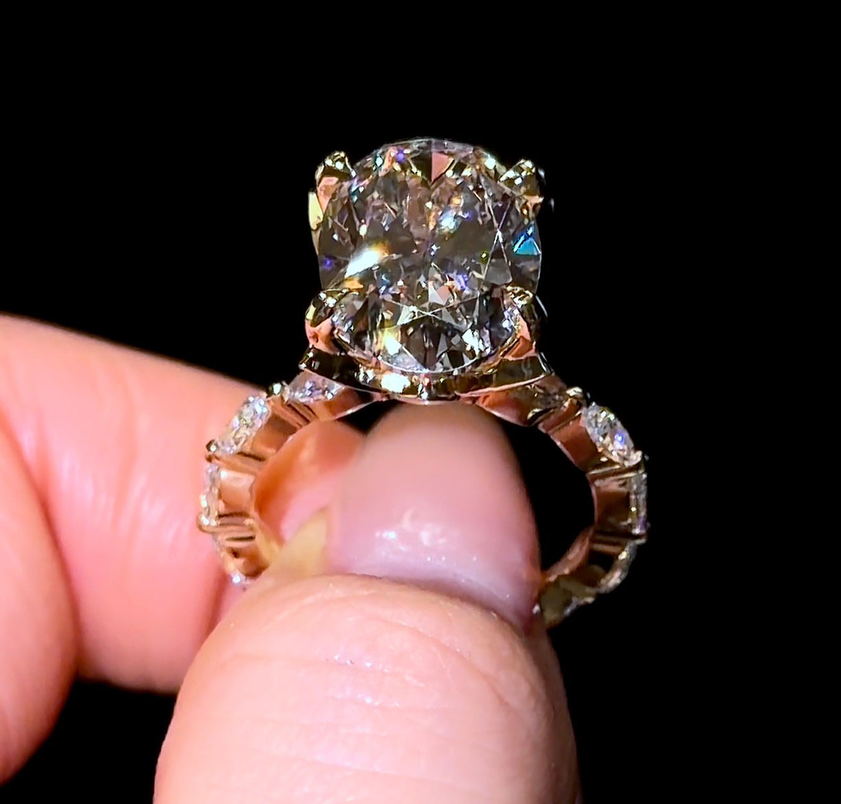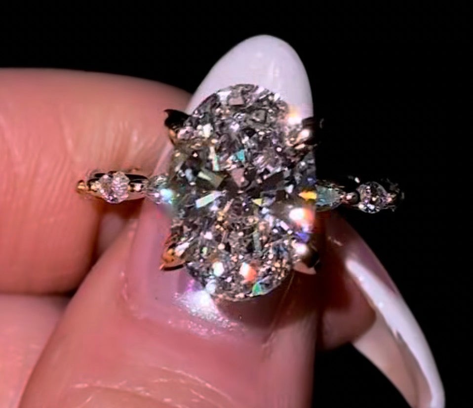 (视频中的戒指镶嵌一颗4克拉椭圆形钻石)